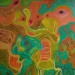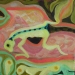 Uit serie  schepsels en organismen. Transparant organisme onder water met in het donkere deel visachtige diertjes..